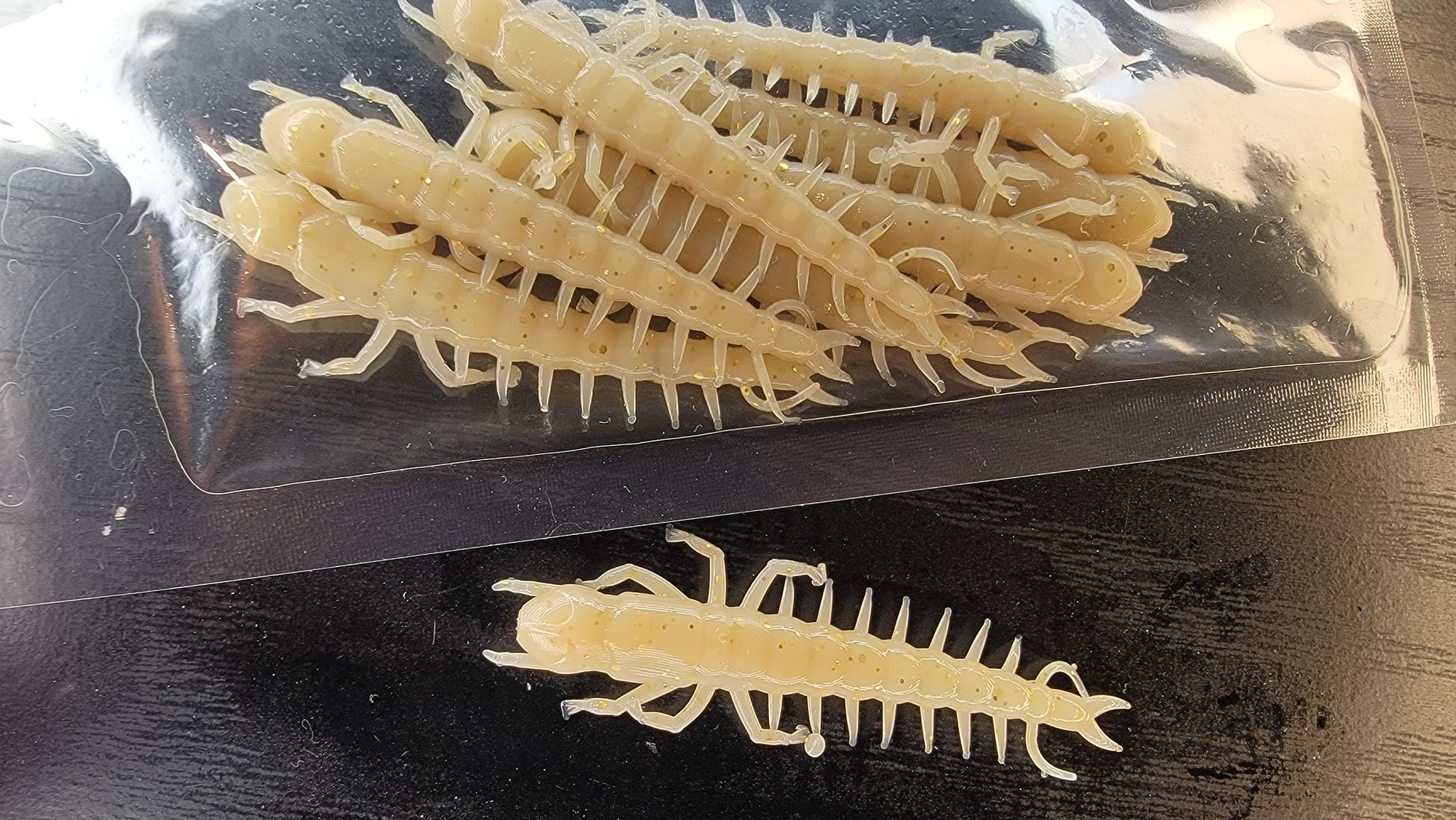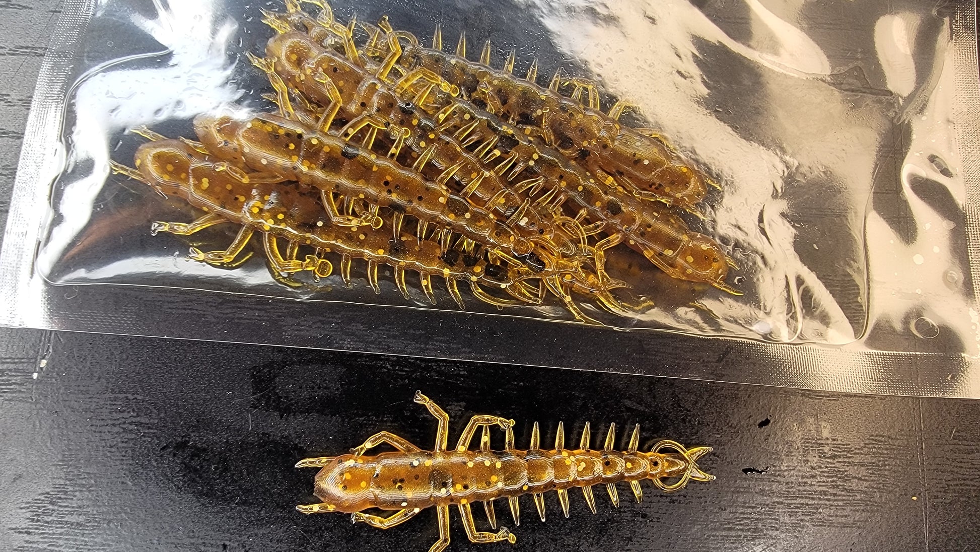 Made out of very soft floating plastic! Floating plastic helps keep the hellgramite standing up off the bottom!